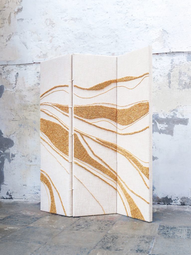 • Savoir-faire et œuvres murales : imaginé par le scénographe Brice Tual, ce parcours propose une immersion dans la matière à travers des panneaux décoratifs et des créations uniques. On y retrouve notamment les ateliers François Pouenat, Fey, Grav’Or, ou encore la Manufacture Tapis de Bourgogne.