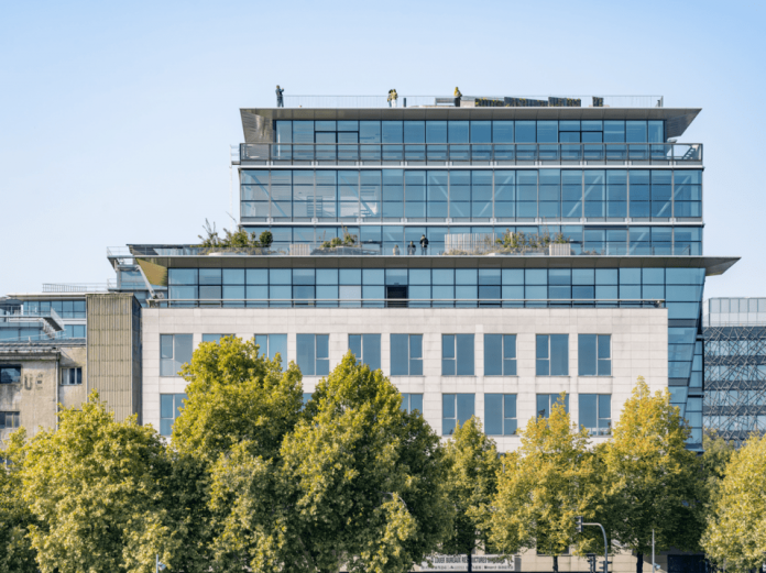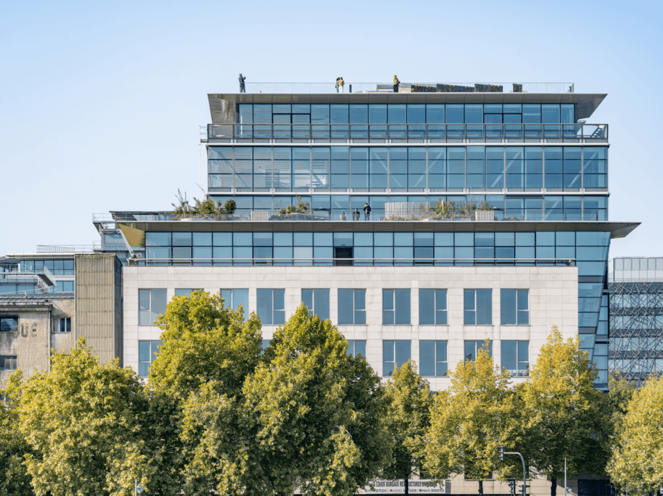 Cette approche se prolonge jusqu’au rooftop, aménagé comme une plateforme panoramique pouvant accueillir un usage événementiel tout en intégrant des plantations légères. L’ensemble du projet, du rez-de-jardin aux toitures, est traversé par la même ambition : créer des espaces extérieurs vivants plutôt que des décors. Le paysage devient alors un prolongement naturel des lieux de travail, un lieu de bien-être et un vecteur de biodiversité dans un tissu urbain dense.