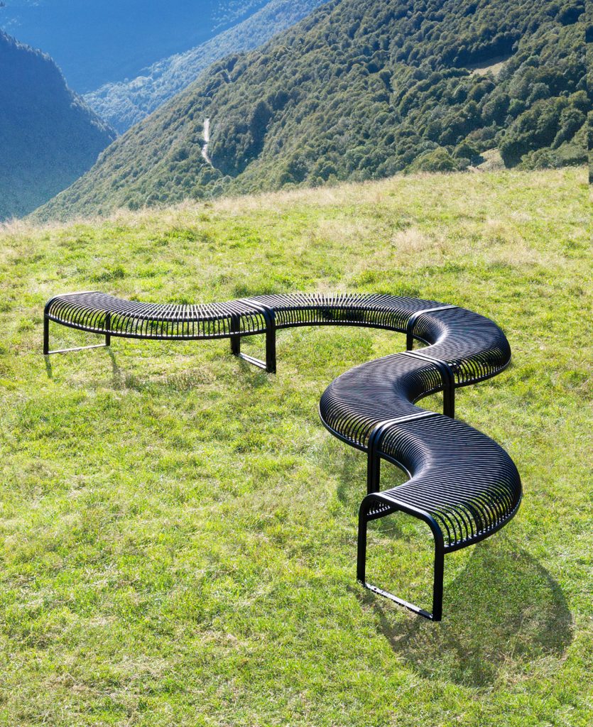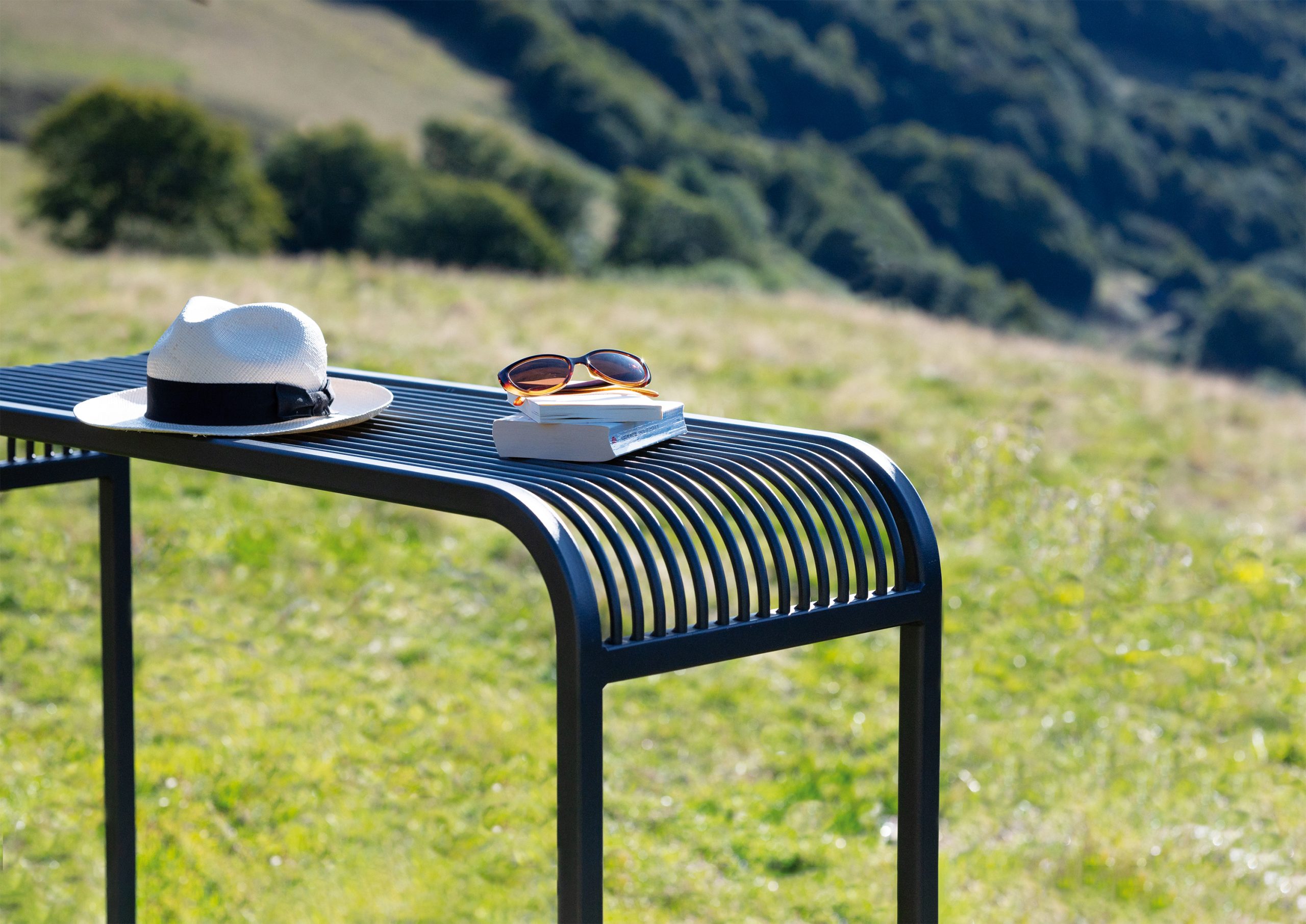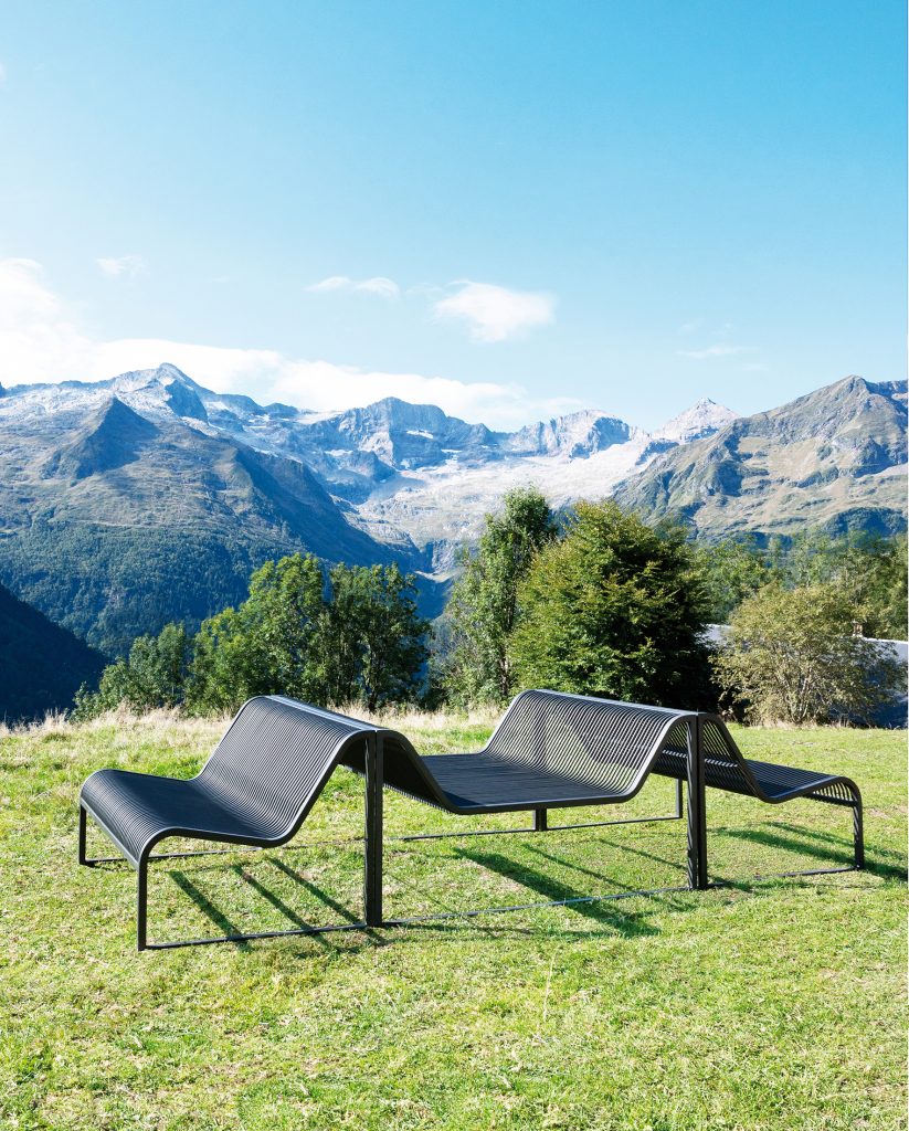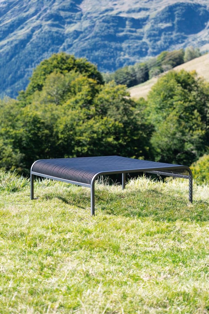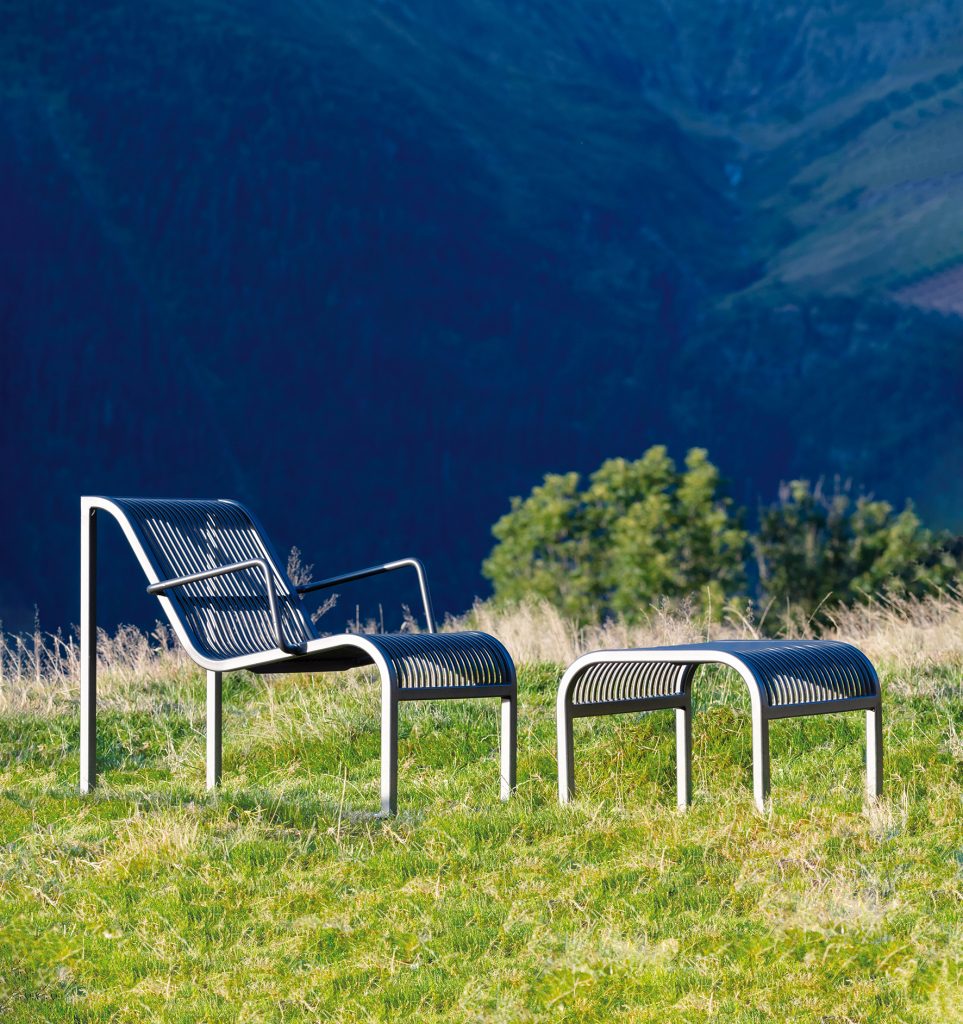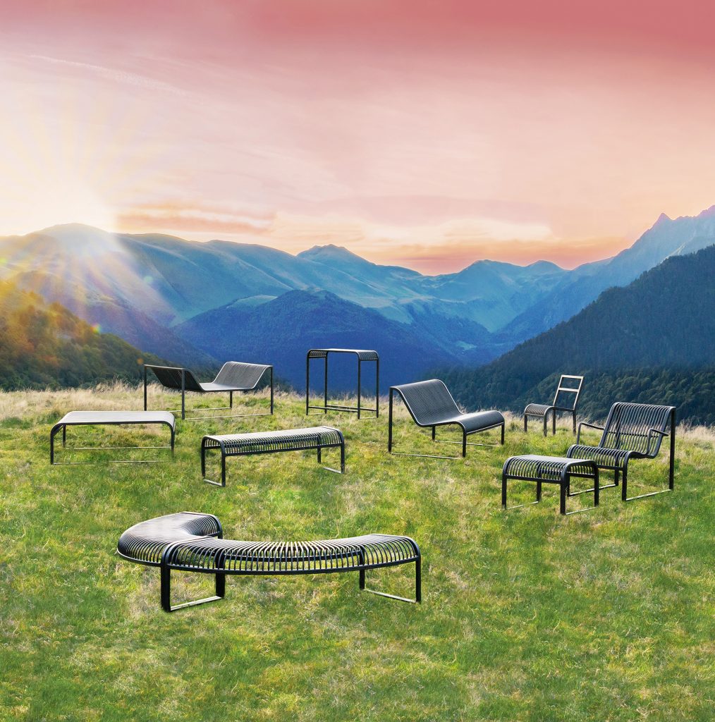 Les gammes métal Antibes, Cannes et Nice, réalisées en ronds d’acier cintrés issus à 90 % de recyclage, allient robustesse, esthétique et jeux de lumière. Bancs, transats ou comptoirs : une palette complète pensée pour le confort, le design et les usages de la ville.