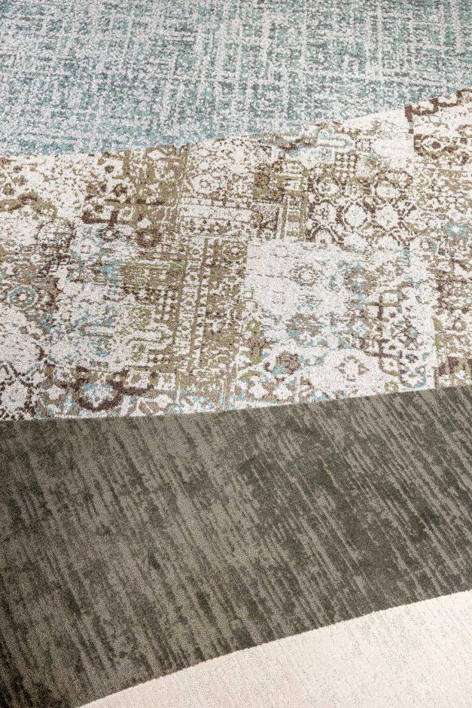 La dernière séquence, articulée autour de Territoires motif Sierra, Infini Colors motif Désert et French Couture motif Léon, introduit une forme d’instabilité maîtrisée. Les motifs se fragmentent, les effets de flou déplacent les limites et suggèrent des configurations ouvertes. Le sol devient un support d’évolution, capable d’accompagner des usages mouvants et des espaces reconfigurables. L’écriture du projet intègre ici cette variabilité comme donnée initiale.