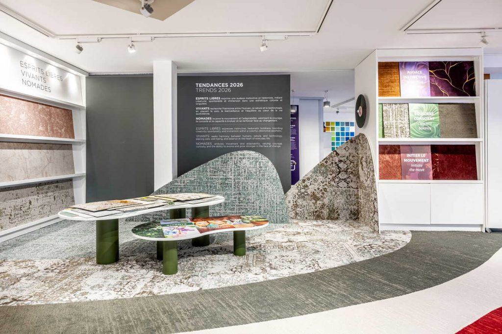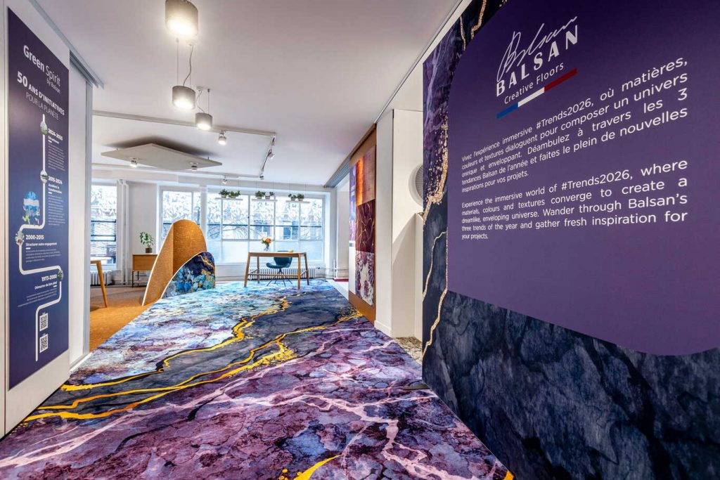 Jusqu’au 31 mars 2026, le showroom parisien de Balsan accueille « Trends 2026 », une mise en perspective des transformations à l’œuvre dans les espaces d’hospitality. Structurée autour de trois dynamiques – Esprits Libres, Vivants, Nomades – l’exposition explore le potentiel du sol comme surface de projet, capable d’orienter les ambiances et d’infléchir les usages.