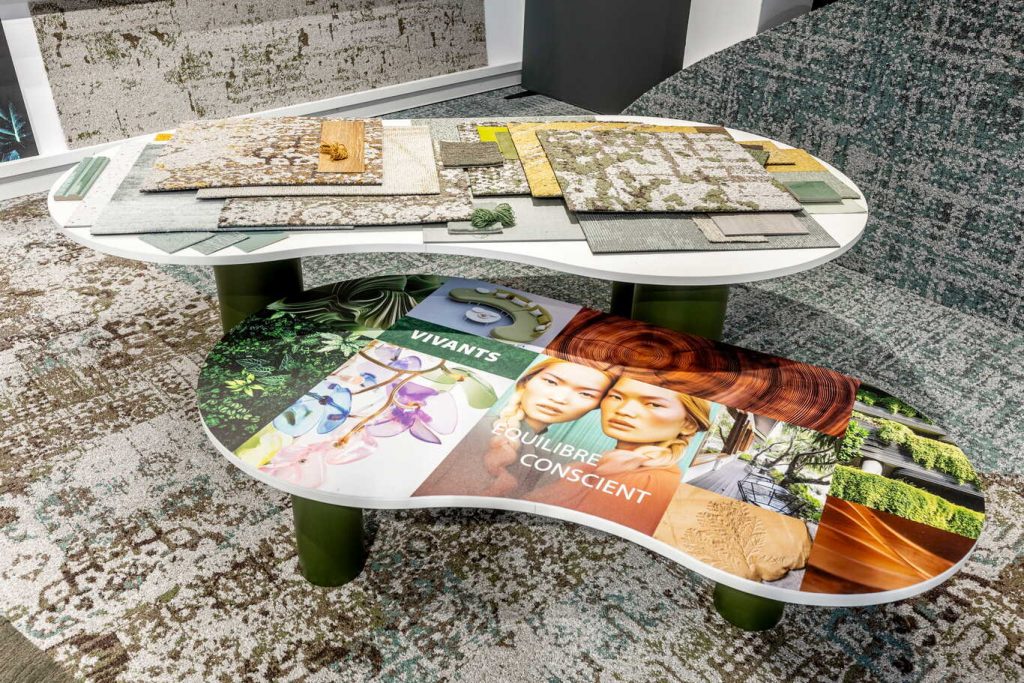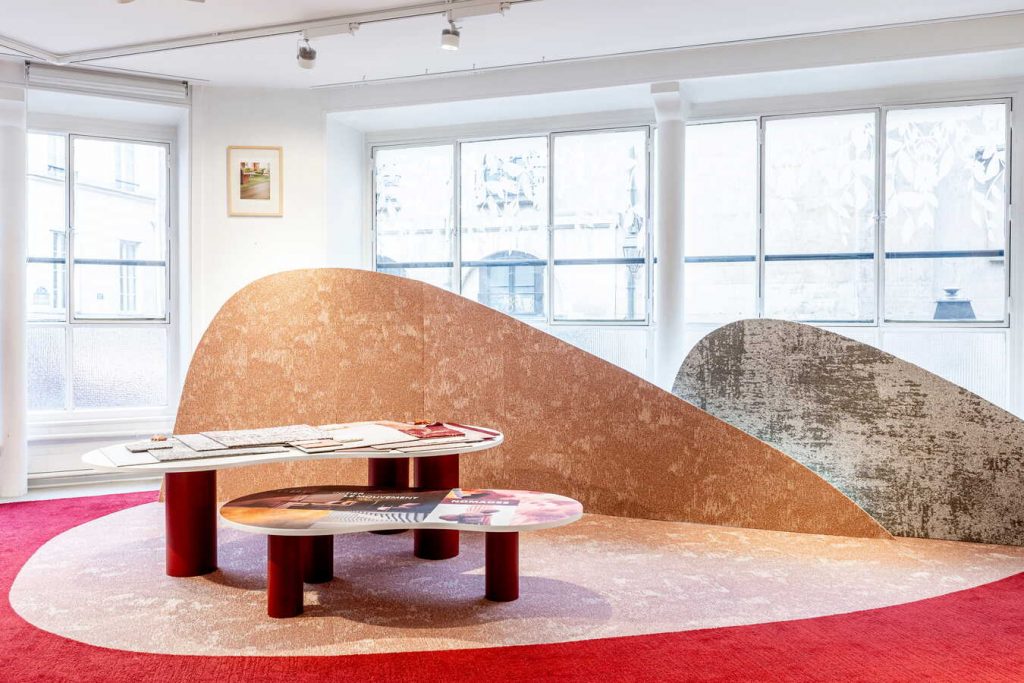 Avec French Couture motif Darius, Wild Nature motif Eden et Infini Colors motif Désert, la scénographie s’oriente vers une écriture plus apaisée. Les tonalités se rapprochent du végétal et du minéral, les textures se diffusent. Le sol accompagne les circulations sans les contraindre, instaurant une continuité perceptive. L’ensemble dessine des environnements attentifs à la qualité d’accueil, où confort, durabilité et présence des matières s’équilibrent.