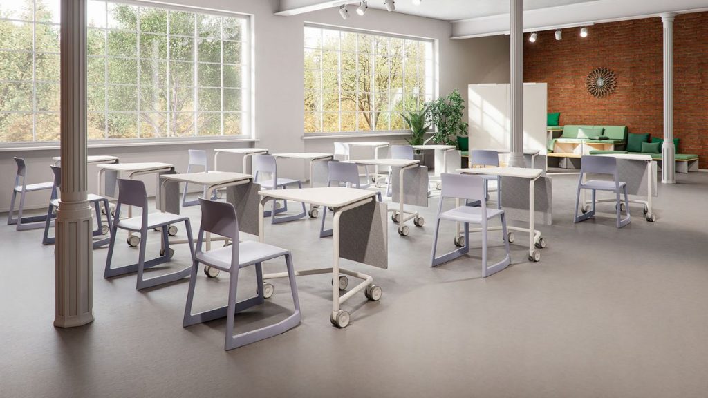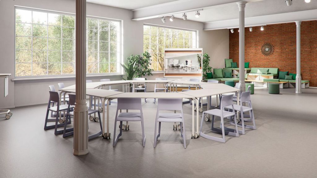 La nouvelle version de Dancing Wall prolonge cette réflexion en affinant un dispositif déjà identifié dans les environnements tertiaires. Allégée, plus durable et plus économique, cette cloison mobile conserve ses usages multiples – séparation, support d’écrans, tableaux ou éléments végétalisés – tout en intégrant une déclinaison à mi-hauteur, la Dancing Station. Celle-ci peut prendre la forme d’une console, d’une table étroite, d’un module de tri ou d’un point de convivialité.