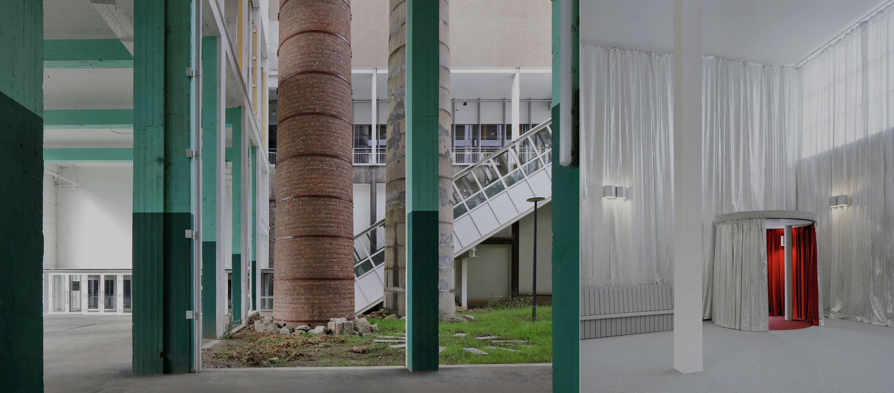 L’intervention repose sur une série d’actions ciblées, économes et réversibles, qui réorganisent le complexe tout en conservant sa logique spatiale et son caractère matériel. De nouvelles insertions – structures en bois, gradins, éléments en béton – définissent une succession d’espaces interconnectés : grande scène, petite salle, espaces de répétition, foyers publics et pavillon de cour. Pensé pour être démonté et réutilisé, le projet privilégie des modes constructifs réversibles et des matériaux recyclables, permettant au site de fonctionner comme un dispositif flexible, capable d’accompagner une condition urbaine transitoire.
