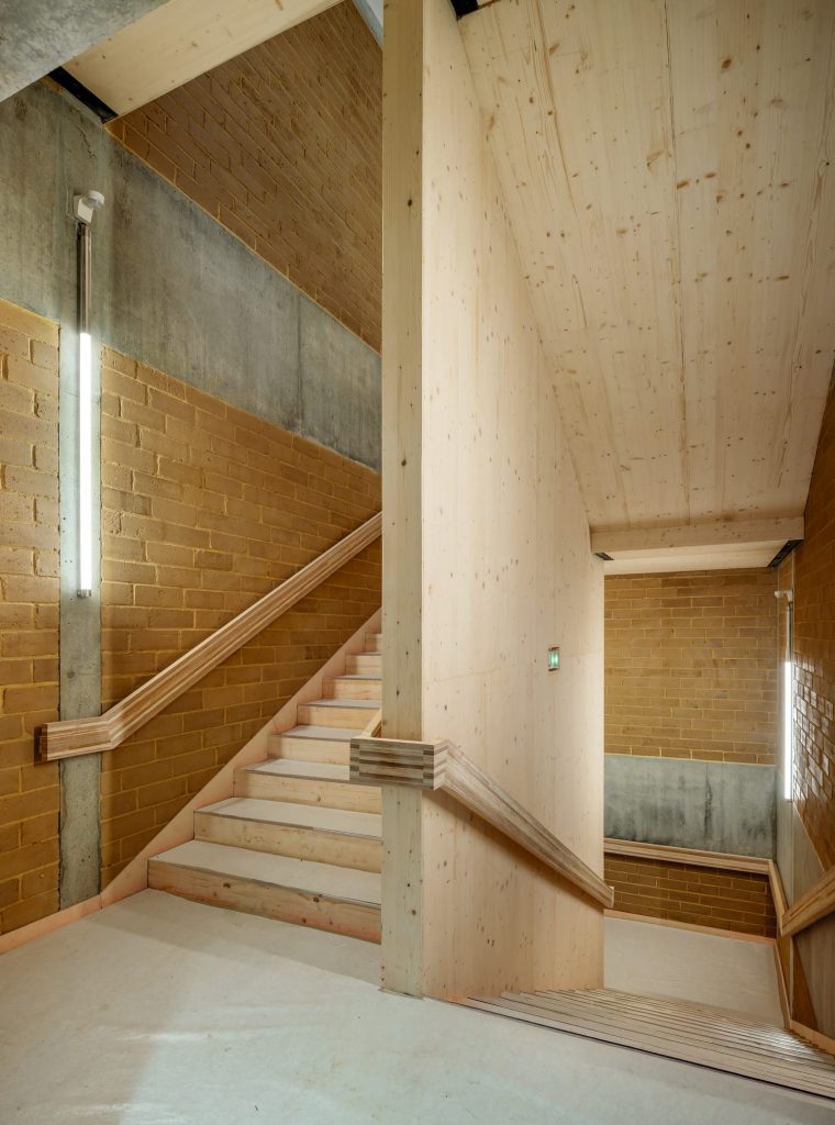 L’architecte souligne : « La façade est pensée comme un dispositif actif, capable de répondre aux conditions climatiques sans recourir à des systèmes lourds. Nous avons combiné des matériaux biosourcés, une certaine inertie apportée notamment par la terre crue, et un travail fin sur la ventilation naturelle. Les ouvertures permettent de faire circuler l’air entre les façades et entre les niveaux, ce qui est essentiel pour le confort d’été. Cette approche a été testée à travers des simulations, notamment en projection sur des scénarios climatiques à horizon 2050. »